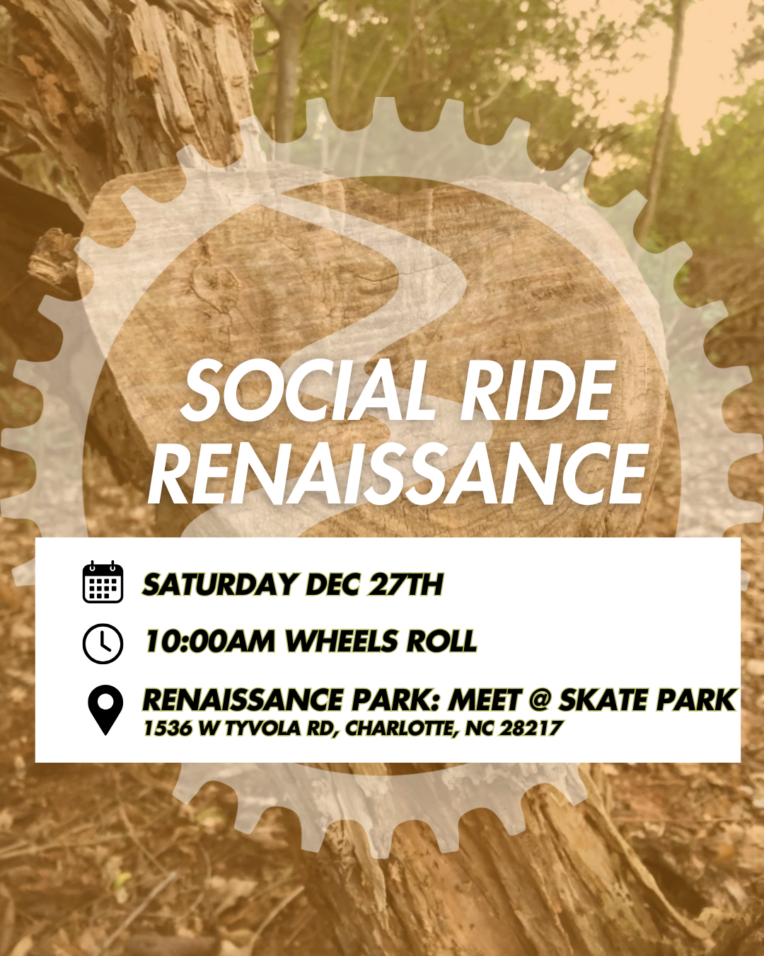 Renaissance Park 1536 W Tyvola Rd, Charlotte, NC, United StatesCome and join us for a fun and social ride round the reinvigorated Renaissance Park! Meet 10am at the trailhead by the skatepark. All levels of rider welcome!