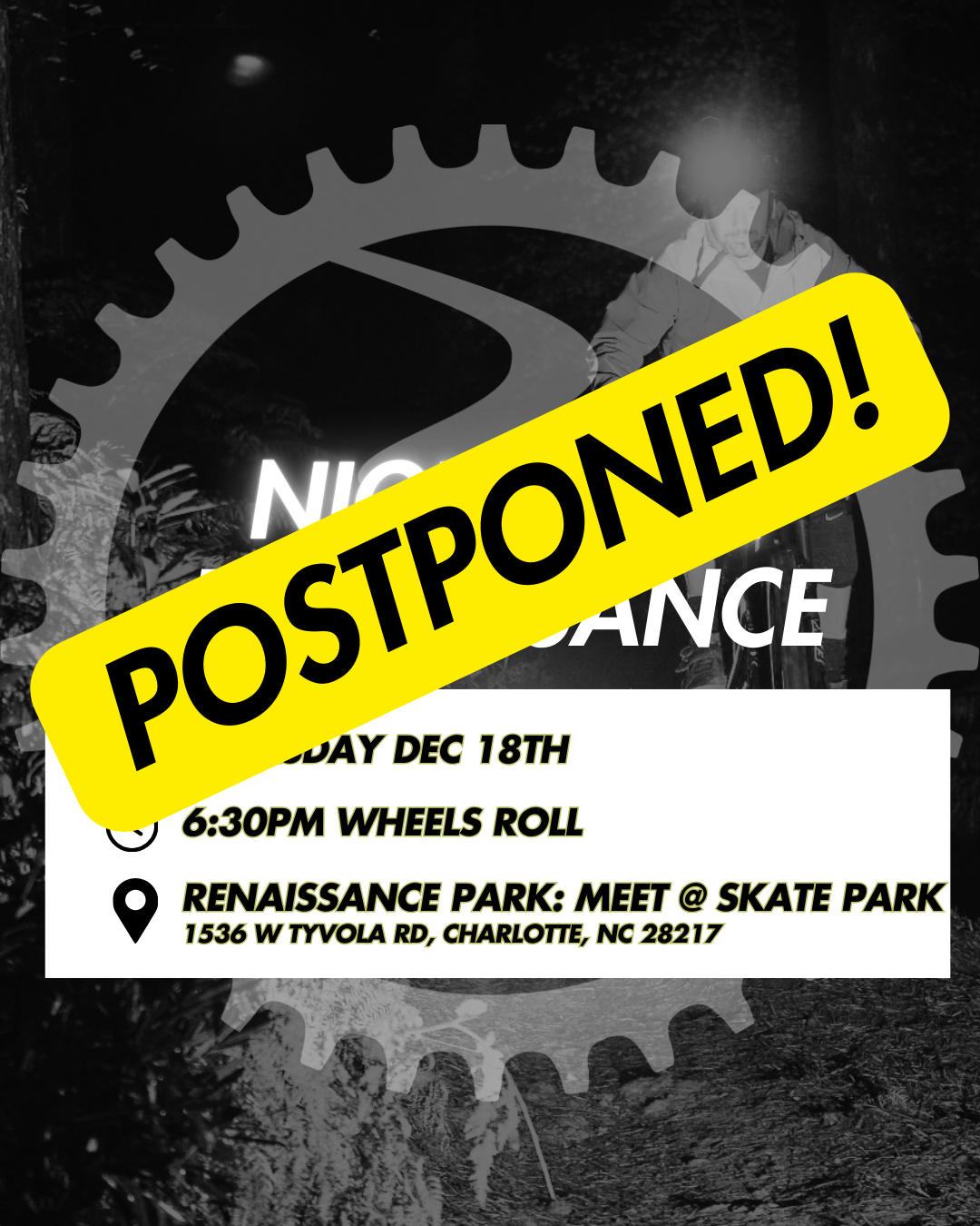 Renaissance Park 1536 W Tyvola Rd, Charlotte, NC, United StatesWell the heavy rain meant we had to postpone our night ride, so we've rescheduled it as a day ride for SATURDAY DEC 27th. Come and close the year strong